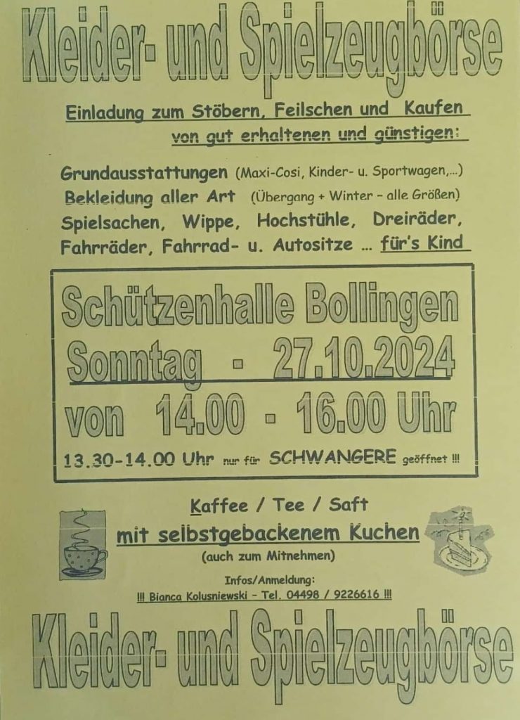 Kinderkleider- und Spielzeugbörse am Sonntag, 27. Oktober 2024 in der Schützenhalle in Bollingen.